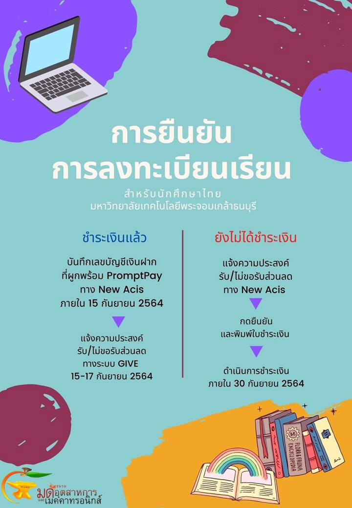 ประชาสัมพันธ์การยืนยันการลงทะเบียนเรียน และขอรับส่วนลดค่าธรรมเนียมการศึกษา สำหรับนักศึกษา